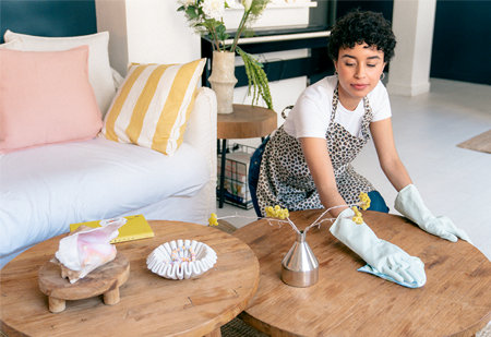 Unsere Haushaltshilfen sorgen für eine gründliche Reinigung deines Zuhauses. Dazu gehören unter anderem Staubwischen, Saugen, Wischen, Küchen- und Badreinigung sowie Müllentsorgung. Sorge bitte dafür, dass du vor dem Arbeitsbeginn die Arbeitsfläche abgeräumt hast. Falls du spezielle Wünsche hast, kannst du diese bei der Buchung angeben. Die Unterstützung im Haushalt bedeutet, dass die Wecasa-Pros sich ausschließlich mit Haushaltsreinigung befassen und keine Reparaturen, handwerklichen Arbeiten oder Babysitting übernehmen.